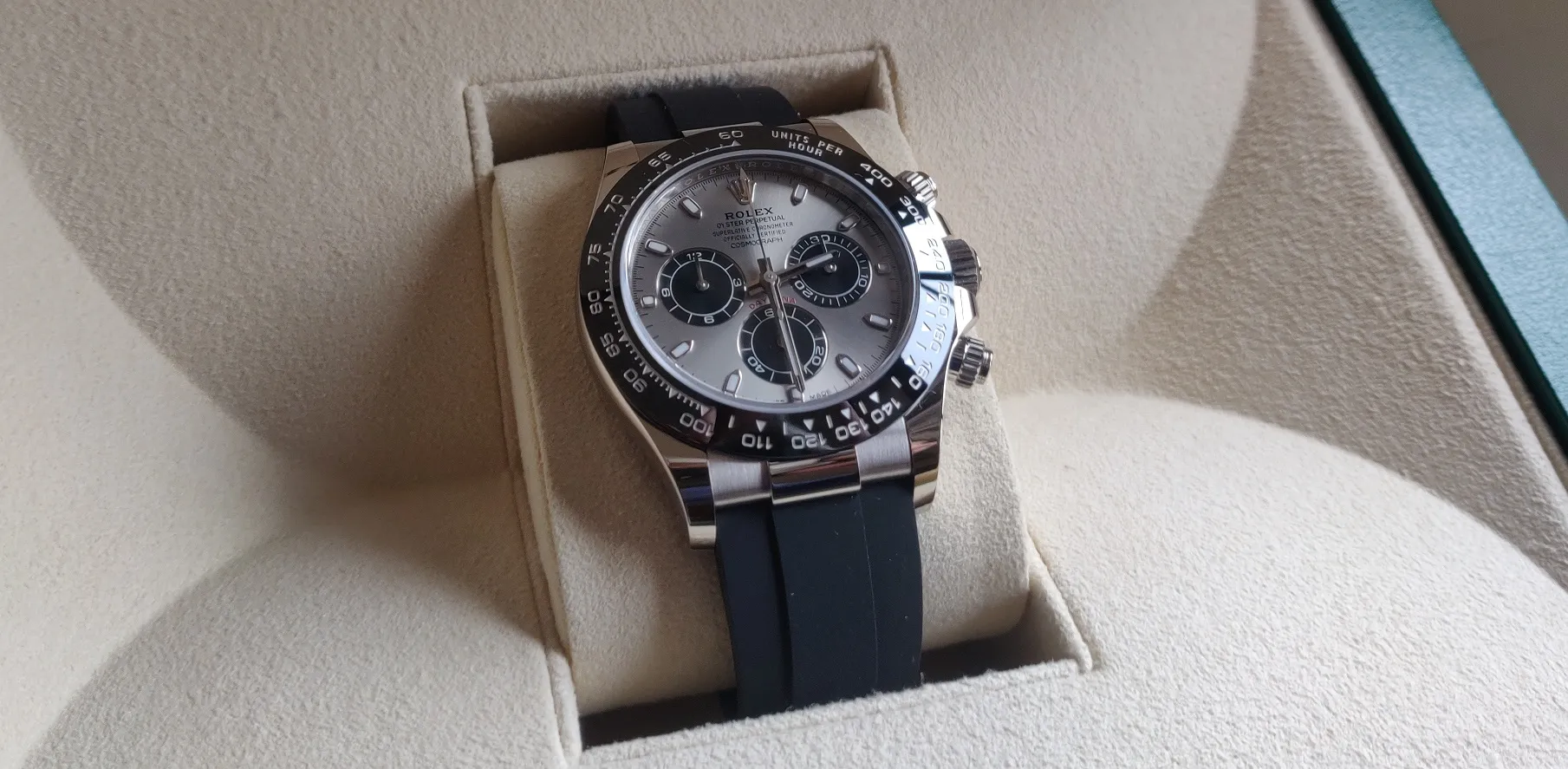 オイスターフレックスは、当初は「ヨットマスター」の18 ct エバーローズゴールドモデルにのみ採用されていましたが、現在では「デイトナ」や「スカイドゥエラー」など、一部のゴールドモデルにも採用されています。