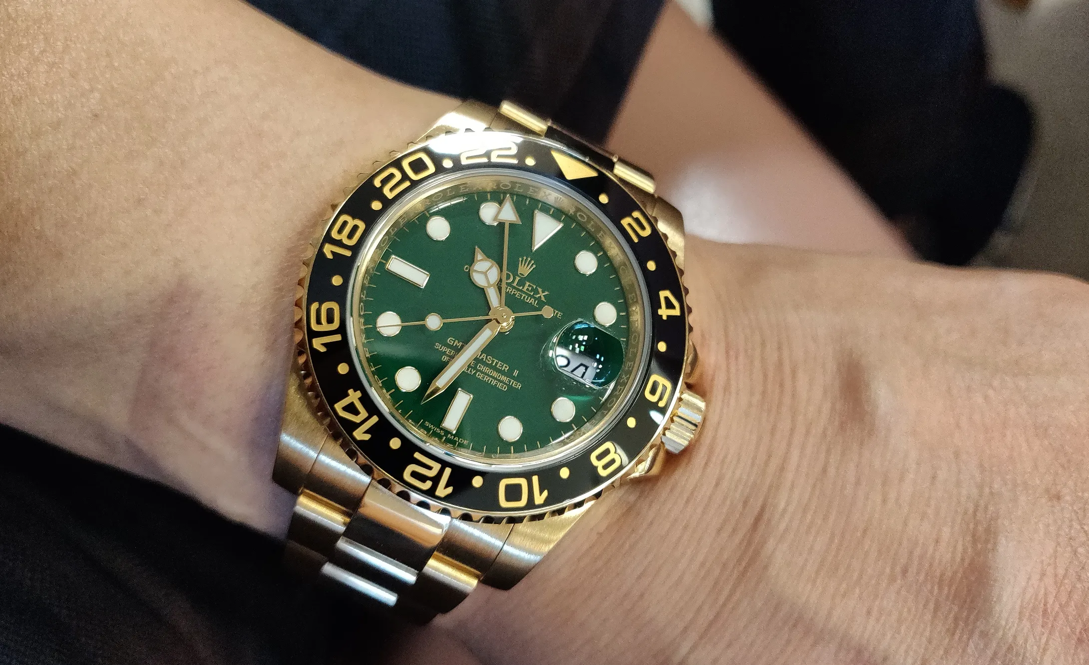 これは2019年、オサーンが買ったGMTマスターII Ref. 116718LN グリーンダイアルをして仕事に行ったときに、金無垢の時計ということでウキウキしながら仕事中に時計をチラチラ見ていたある日。そんな僕の時計を職場の部下たちも横目で見ていたようだった。そんな僕がトイレで “大” をするために個室に入っていると、”小” をしに来た部下2人がしていた会話から、ファラオというニックネームが付いた。